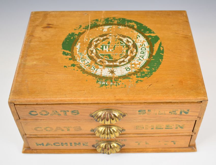 Coats Sheen shop display or advertising set of three drawers, width 32.5cm