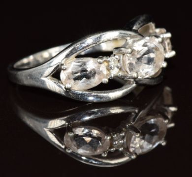 A 9ct gold ring set with three morganite and diamonds, 3g, size N