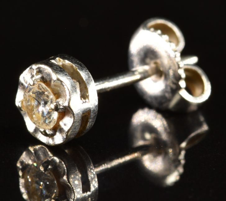 A 14k earring set with a diamond of approximately 0.13ct, 0.9g