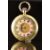 Unnamed 18ct gold keyless winding half hunter pocket watch with blued hands, black Roman numerals, engraved gold dial, blue Roman numerals to the pink guilloché enamel chapter ring of the case and unsigned movement, case diameter 37mm, serial number 139618, 43.7g.