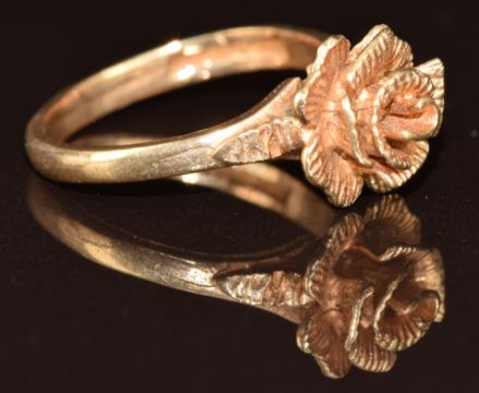 A 9ct gold ring in the form of a flower, 3.7g, size N