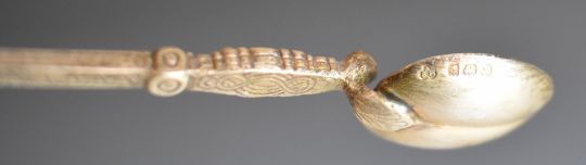 Hallmarked and other silver items to include Elkington anointing spoon, Dutch or similar heart shaped pot, baby's rattle formed as an apple, three napkin rings, souvenir spoons, pencil holders and propelling pencils and silver topped glass dressing table pots, approximately 150g weighable silver