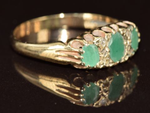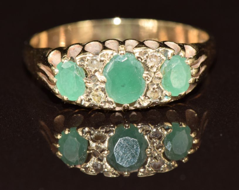 A 9ct gold ring set with emeralds and diamonds, 2.4g, size O