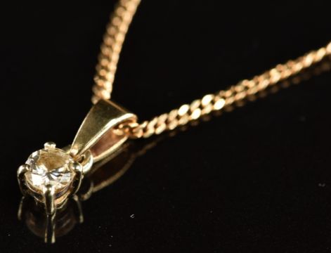 A 9ct gold pendant set with a diamond of approximately 0.25ct on 9ct gold chain, 2.4g, 38.5cm