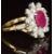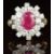 An 18ct gold ring set with an oval cut ruby of approximately 1.7ct surrounded by diamonds, the total diamond weight approximately 2.3ct, 7.9g, size R