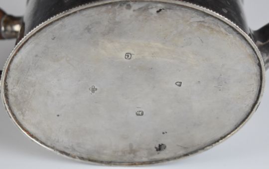 Georgian hallmarked silver teapot of oval form, London 1778, maker Charles Aldridge & Henry Green, length 26.5cm, weight 478g all in
