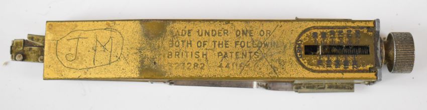 Apothecary pewter hinged box with suspension loop impressed 'Albatum', 19thC pewter snuff box impressed W Coldrick, bronze collie dog on a pewter mount, GPO no 3 scales and six cased Antonio y Cleopatra cigars