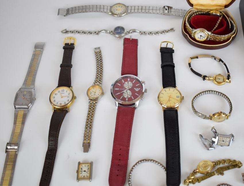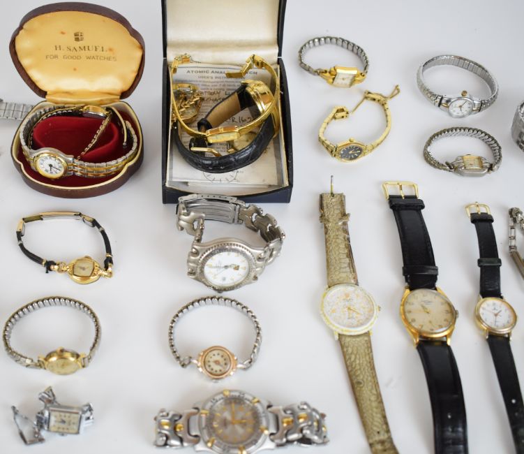 Over 50 various wristwatches including J W Benson 9ct gold ladies, Crane & Viceroy, Tissot, Avia, Pulsar, Timex, Smiths, James Walker, Citizen, Buler and Raymond Weil