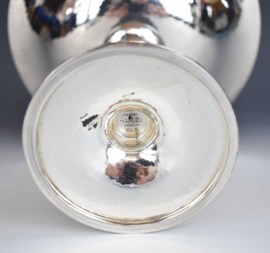 Holmsted Denmark silver tazza in the manner of Georg Jensen, with hammered decoration, marked to underside 925S sterling Holmsted Denmark and with Danish silver marks, height 17, diameter 19cm, weight 539g