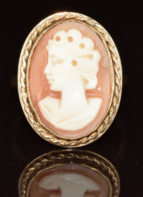 A 9ct gold ring set with a cameo, 4.6g, size M