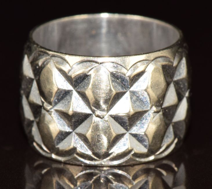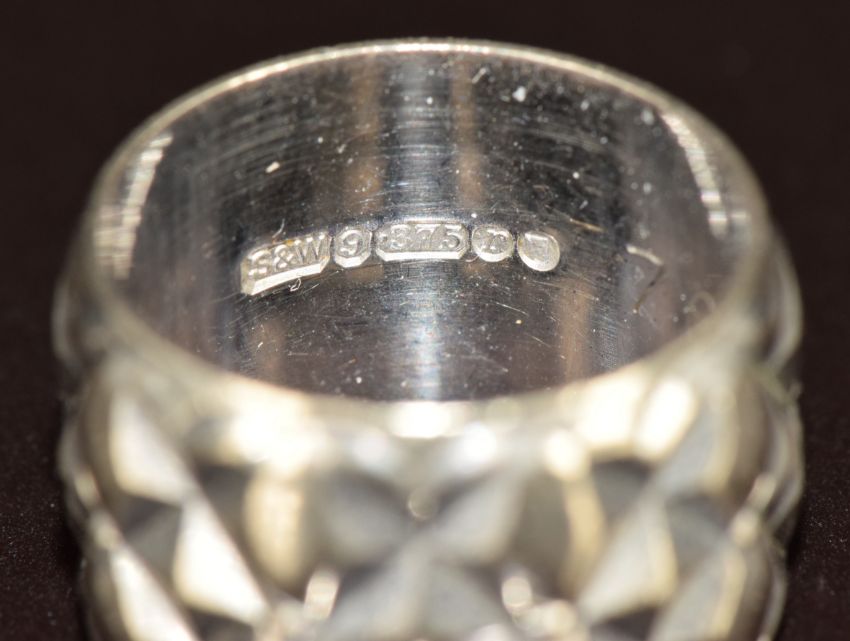 A 9ct white gold ring with hobnail pattern, 7.3g, size I