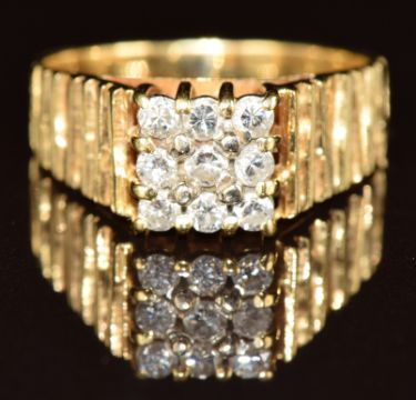 An 18ct gold ring set with nine diamonds in a square setting, 5.3g, size N