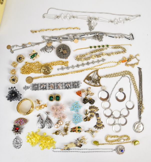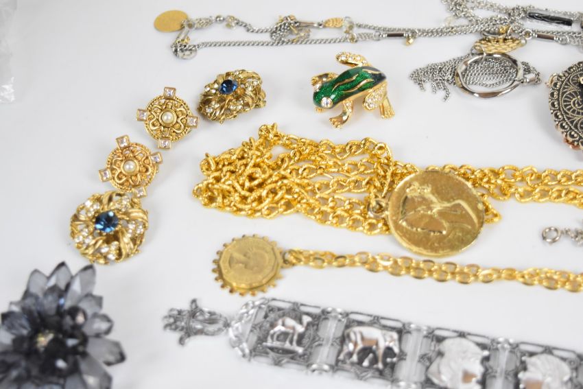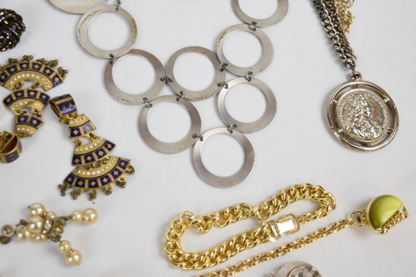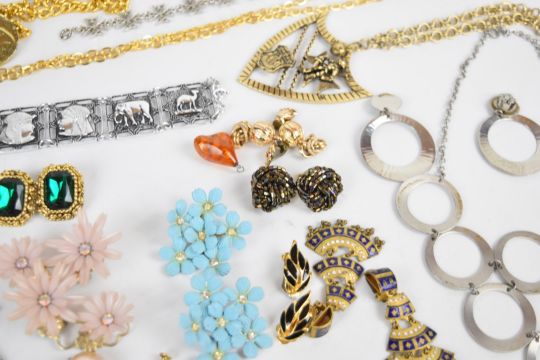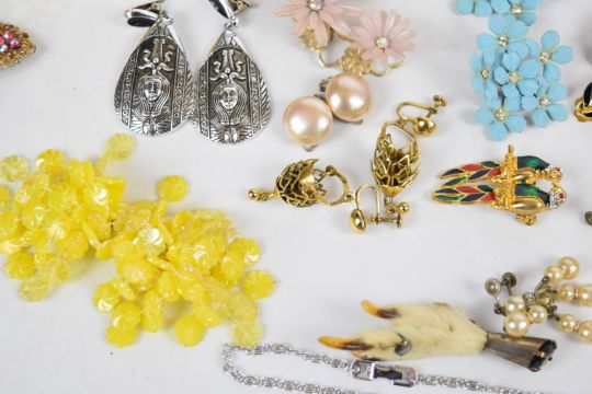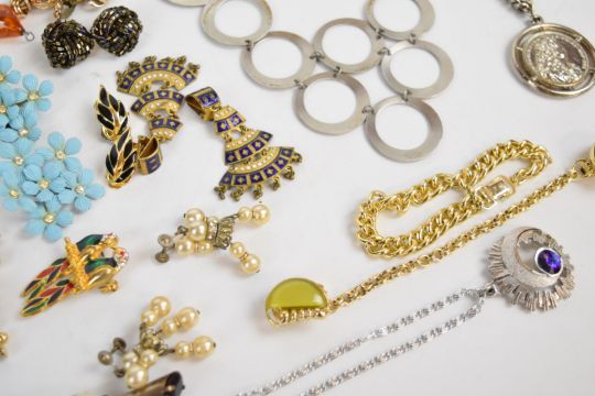 A collection of costume jewellery including vintage earrings, Moda necklace and earrings, necklaces, brooches, etc