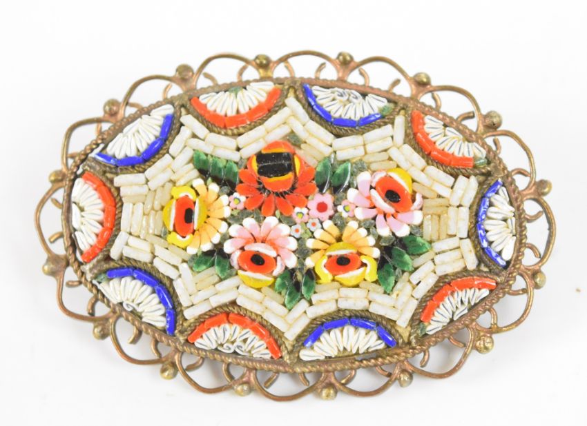 Thirty-seven micro mosaic brooches including 19thC examples, mainly floral designs