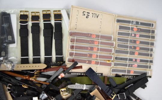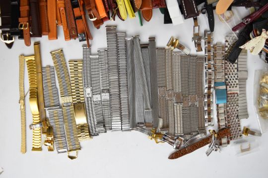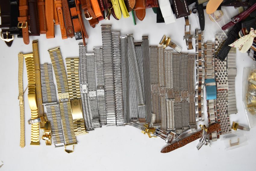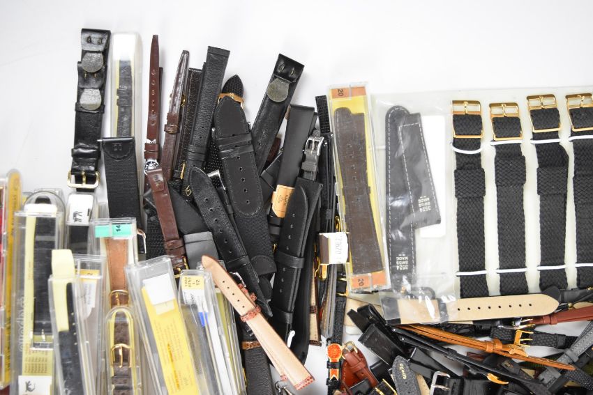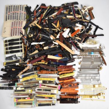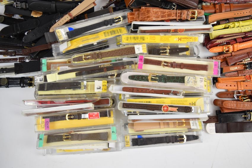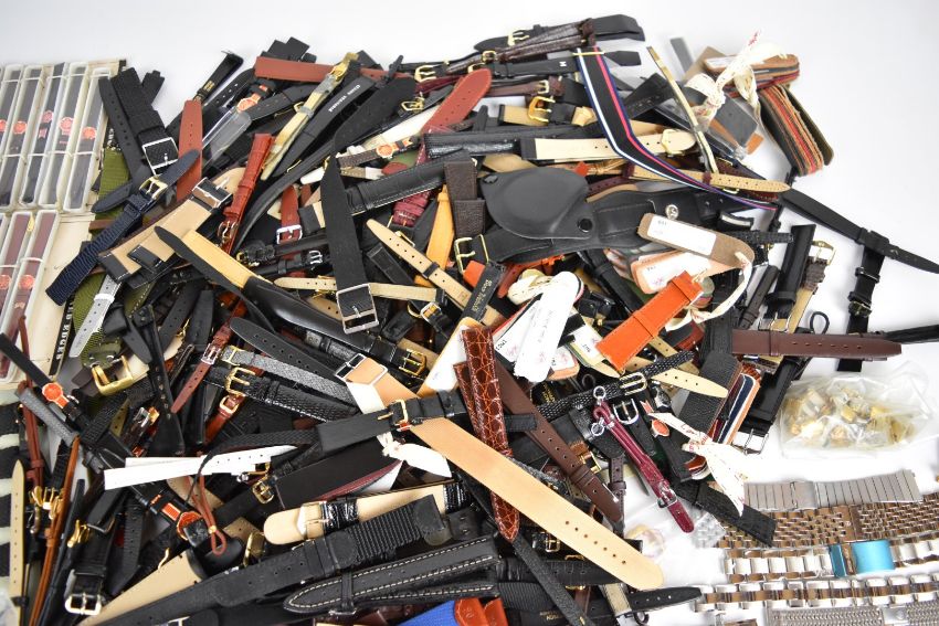 Over 300 various wristwatch leather straps and steel bracelets including Hirsch, mostly unworn, some in original packaging.