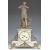 19th century figural mantel clock with marble and gilt metal mounted case surmounted by a person playing the flute, the two train movement striking on a bell, height 48cm