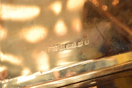 Art Deco 9ct gold cigarette case with engine turned decoration, Birmingham 1926, 87.2g, 7 x 8.3cm
