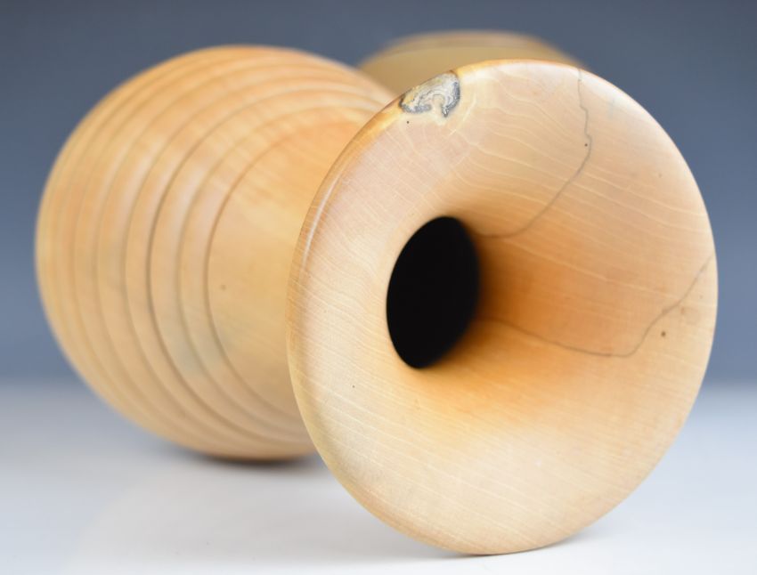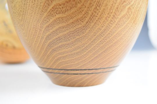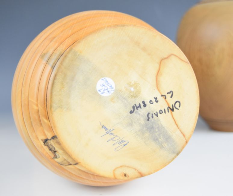 Two Paul Chapman turned treen vases, one Horse Chestnut wood the other Robinia, tallest 33cm