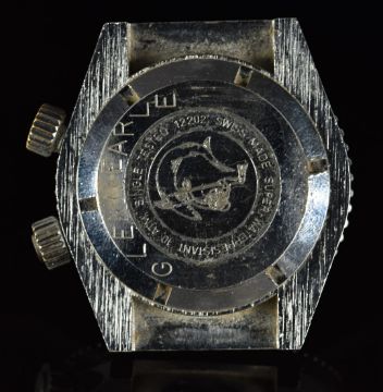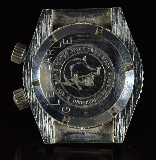 Chromatic Calendar gentleman's diver's wristwatch with date aperture, luminous hands and hour markers, blue dial, gold inner bezel, black, pink, gold and silver outer bezel, stainless steel case and 17 jewel movement, case diameter 41mm.