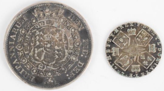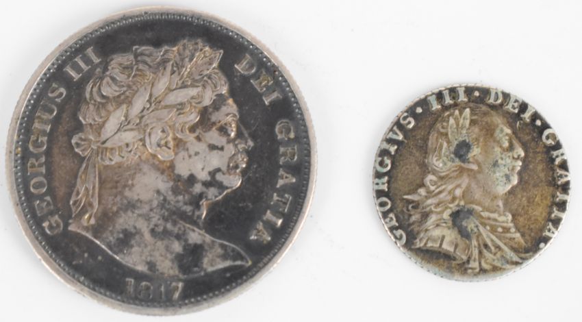 1817 George III bull head half crown and a 1787 George III sixpence