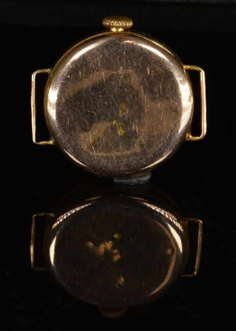 Three gold ladies wristwatches comprising an 18ct gold example on black fabric strap and two 9ct gold examples, one on 9ct gold bracelet, largest case diameter 26mm.