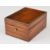 Bijouterie items including 19thC papier maché snuff box with rooster and hen decoration 'For Nothing', carved burr wood candlestick, olive wood parquetry pocket watch holder and a glazed cabinet with swivel door and receptacle for holy water.