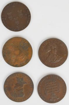 Ten bronze / copper trade and advertising tokens, mostly halfpenny for Sise Lane with King, Commons and Lords verso, 1820 Hibernicus, 1794 Lancaster, 1794 Peace and Plenty, 1794 Bay Trade, Middlesex and London, Macclesfield, J Williams London and 1795 North Wales