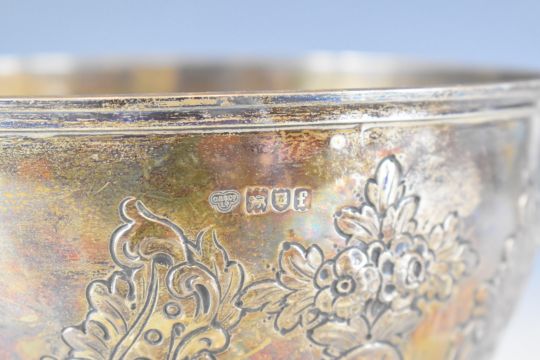 Goldsmiths & Silversmiths Co Ltd Victorian/Edward VII hallmarked silver pedestal rose bowl, with embossed floral decoration, London 1901, diameter 17.5cm, weight 393g