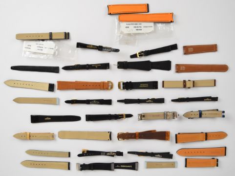 Twenty-five wristwatch straps including Omega, Longines, Baume & Mercier and Ebel, mostly unworn.