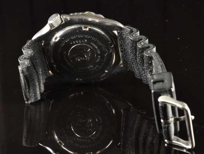 Seiko diver's wristwatch ref. 7N36-6A40 with day and date aperture, luminous hands and hour markers, black dial, stainless steel case and signed calibre 7N36 movement, case diameter 42mm, serial number 810047.