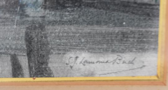 Samuel John 'Lamorna' Birch (1869-1955) watercolour stream with house beyond, titled verso the Ouse, Hemmingford Grey, Hants, a study of trees, signed lower right, 35 x 43.5cm, in gilt frame