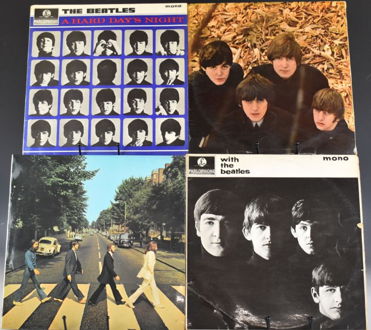 The Beatles & Solo - Nine albums comprising With The Beatles (PMC1206) Garrod and Lofthouse sleeve, A Hard Day's Night (PMC 1230)  'Sold in UK' etc Ernest J Day cover, Beatles For Sale (PMC 1240) gatefold sleeve 'Sold in UK' etc, Help! (PMC 1255) 'Sold in UK' etc Garrod and Lofthouse cover, Rubber Soul (PMC 1267) Garrod cover, Revolver (PMC 7009) 'Sold in UK' etc Ernest J Day cover, Abbey Road (PCS 7088) with 'An EMI Recording' and 33 1/3 on label, Let It Be (PCS 7096) with red apple on back of sleeve and McCartney (PCS 7102) gatefold. Records appear VG to VG+