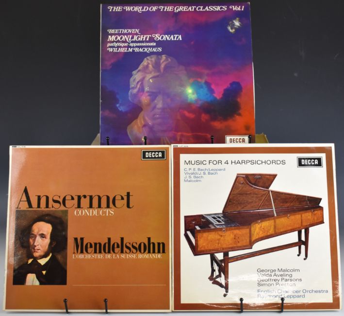 Eighteen early Classical LPs comprising Columbia 33CX1554, 33CX1571, 33CX1621, SAX 2338, SAX 2404 and SAX 2421, Decca LTX 2851, LK4045, PFS4133, SKL 4089, LTX 5318, LTX 5344, SXL 6166, LXT 6318 and SPA69, HMV SXLP20024, EMI ASD412 and Philips ABL 3310