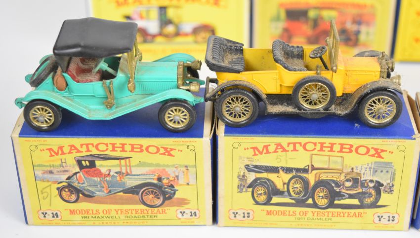 Nineteen Matchbox Lesney diecast Models of Yesteryear comprising numbers Y1-Y16 with duplicates, in original boxes.