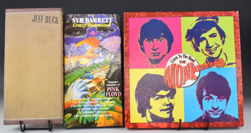 Collection of Rock box sets including The Rolling Stones Forty Licks with booklet and two posters, Eric Clapton Crossroads with booklet, Bob Dylan Biography with booklet and lyric book and The Bootleg Series Vols 1-3 with booklet, The Monkees with booklet, sticker and poster, Syd Barrett Crazy Diamond with poster and Jeff Beck Beckology with poster