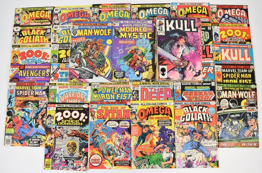 Seventy-three Bronze Age Marvel comics comprising titles Son of Satan, 2001 Space Odyssey, Omega, Tigra, Man-Wolf and Black Goliath, includes unbroken runs and number 1 issues.