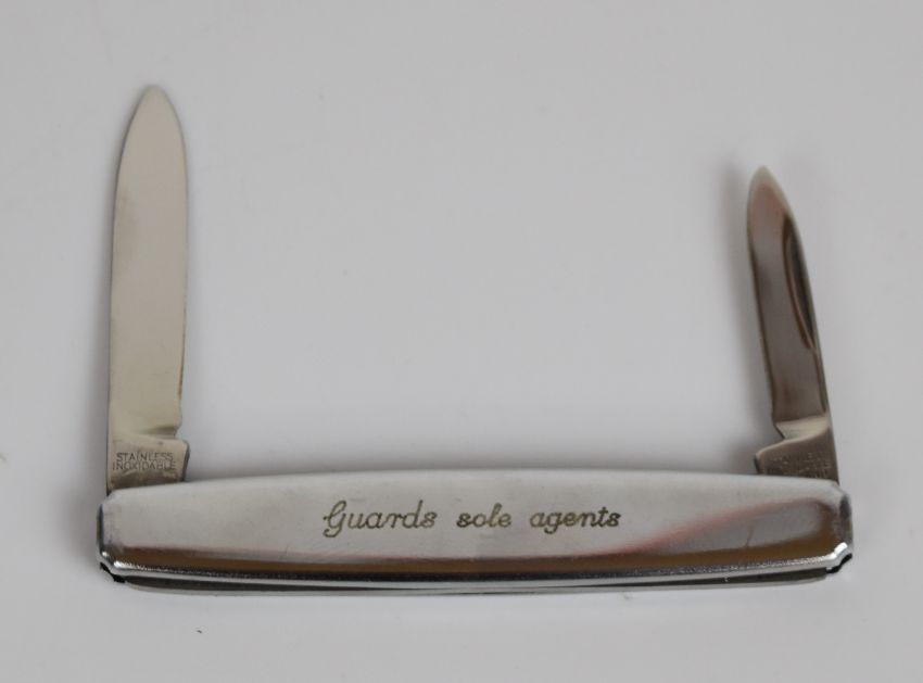 Twelve advertising folding pocket knives, engraved for The Famous Cheltenham, Guards sole agents, maximum length 15.5cm