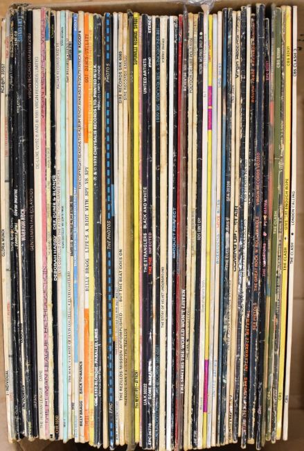 Approximately sixty Punk Rock/ New Wave/ Post Punk and Punk Oi LPs including The Clash London Calling, Give 'Em Enough Rope and The Clash, Sex Pistols Never Mind The Bollocks and The Great Rock n Roll Swindle, The Vibrators Pure Mania, X-Ray Spex Germ Free Adolescents, Stiff Little Fingers Inflammable Material and Hanx!, The Smiths The World Won't Listen, The Jam All Mod Cons and This Is The Modern World, The Cure Boys Don't Cry and The Cure, The Buzzcocks A Different Kind Of Tension, Another Music and Love Bites, Devo Are We Not Men, Electric Chairs, Jilted John, three Penetration, The Photos, The Pogues, two Rezillos, Squeeze, The Stranglers, The Infected, two The Undertones, Blank Generation, Fashion, Gang Of Four, Members, Talking Heads, Tourists, Toyah, Japan, Human League, three Elvis Costello, Billy Bragg, Blondie, records and covers appear at least VG+, some may grade lower