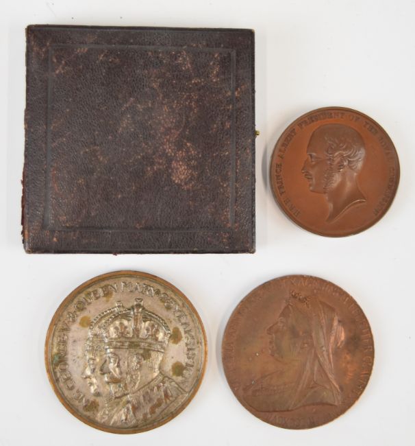 Three commemorative medal coins comprising one sealed Prince Albert, Victoria and George V with Queen Mary