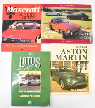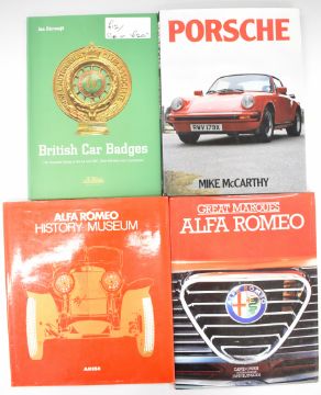 Alfa Romeo History Museum written by Gonzalo Alvarez Garcia, Gian Paolo Garcea etc, published Arese 1979. Great Marques Alfa Romeo by David Owen. Grand Prix Bugatti by Conway, 1983 revised edition. The Ford GT40 by David Hodges 1984. Porsche by Mike McCarthy 1986. Lotus The Sports Racing Cars by Pritchard 1987. The Classic ACs Two Litre to Cobra 1985. Maserati Buyer's Guide 1984. Automotive Mascots, A Collectors Guide 1999. British Car Badges 2009 together with four others (14) Vintage car interest