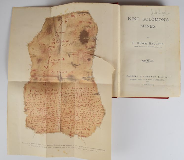 King Solomon’s Mines by H. Rider Haggard, published Cassell & Company 1885 first edition, Eight Thousand with coloured folding map at front and bound in publisher's gilt & black cloth (2” tear on edge of map). George Macdonald Phantastes A Faerie Romance 1892, in 2 volumes, decorative cloth. College Days At Oxford by Rev. Adams (c.1880) illustrated (4)