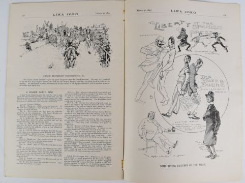 Lika Joko, An Illustrated Weekly conducted by Harry Furniss with illustrations by A.C. Corbould, Ralston, Rene Bull, Louis Wain, Jack B. Yeats, Gordon Browne etc comprising a group of 14 issues from No.1 October 1894 – No. 26 April 1895 in original printed wrappers (part 1 lacks corner of rear wrapper & last advert page)