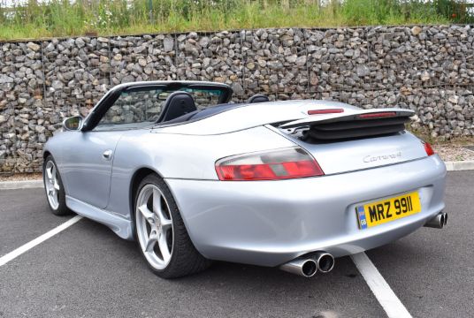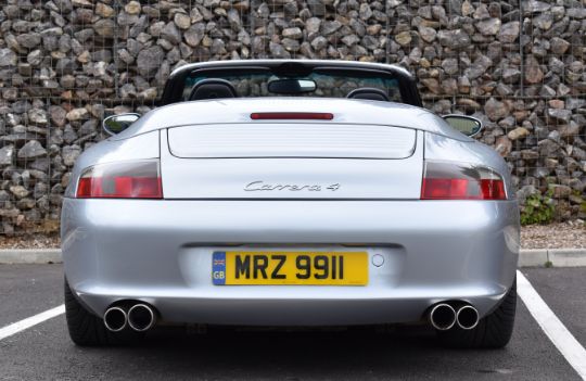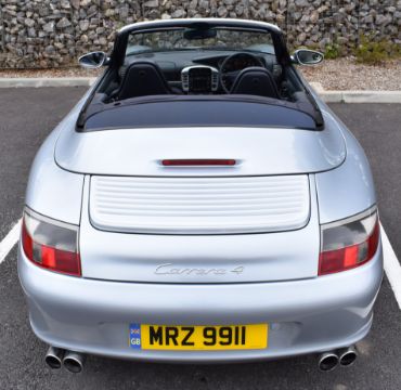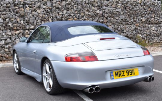 2002 Porsche 911 (996) Carrera 4 Cabriolet, 6 speed manual 3.6 flat 6 petrol, personalised registration number MRZ 9911, with V5c and optional 5 spoke Carrera wheels. MOT expires 06/06/2025. Odometer currently records 84.446 miles. The car was driven to the auction by the vendor, 10% + VAT buyer's premium on this lot