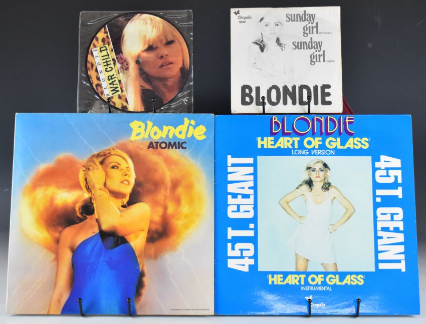 Fifteen Debbie Harry and Blondie LPs including Autoamerican (Japanese pressing), Parallel Lines, Heart of Glass, Atomic, Rock Bird, I'm Always Touched By Your Presence Dear, Eat To The Beat, Sunday Girl, Plastic Letters, The Hunter, Best Of, five 12" singles and twenty nine 7" singles including three picture discs Island of Lost Souls, Maybe For Sure and War Child