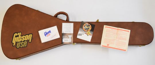 1991 Gibson Flying V Jimi Hendrix Hall of Fame limited edition number 96 of 400 electric guitar finished in black with gold hardware, made in the USA, serial number 93221727, with hard case