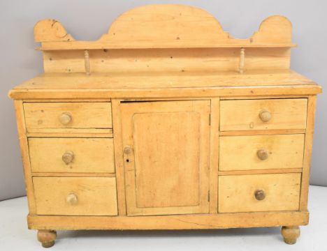 Pine buffet / sideboard with six drawers and gallery top, W135 x D48 x H111cm