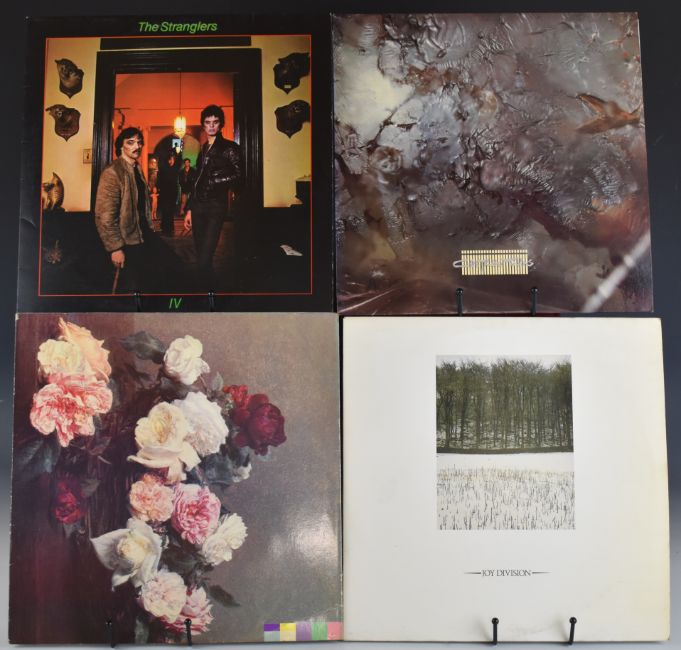 Collection of approximately fifty five Punk / Post Punk / New Wave LPs and twenty 12" singles includes Joy Division Atmosphere (FACUS 2), New Order Power Corruption Lies (FACT 75), Cocteau Twins Head Over Heals and Sunburst & Snowblind, The Stranglers IV, Live (XCERT), Black & White, The Raven and The Passage Pindrop, A Certain Ratio Sextet, The The Infected, The Cure Boys Don't Cry, Iggy Pop Lust For Life, Bill Nelson Chimera, The Durutti Column LC, The Cramps The Crusher, This Mortal Coil Sixteen Days, Split Enz True Colours, Talking Heads Little Creatures, Fear of Music and two Remain In Light, Simple Minds New Cold Dream, Real To Real, Cacophony, Promised You A Miracle, Sister Feelings Call, Sparkle In The Rain and Life In A Day, The Wild Swans Revolutionary Spirit, Yashar, two Pete Shelley, two Ultravox, Deutsche Amerikanische Freundschaft, Original Mirrors, Paul Haig, two The Cars, Pillows & Prayers (picture disc), Associates, Europeans, two Human League, Ian Drury, Primal Scream Kowalski, The B-52s, Magazine, The Glove Blue Sunshine, The The Soul Mining, Shiny Two Shiny, Arthur Brown, three Elvis Costello, two The Police, two Robert Fripp, Scritti Politti, Devo, Wood Beez etc, records generally appear Ex, some may grade lower