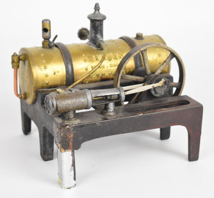 Weeden American live steam stationary engine with single cylinder engine and brass boiler on cast base