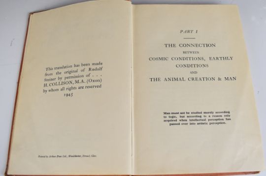 Rudolph Steiner Man As Symphony of the Creative Word (Esoteric Studies) Twelve Lectures given at Dornach from 19th October to 11th November 1923, published Rudolph Steiner & Anthroposophic Press and with this translation made by H. Collison 1945, bound in cloth