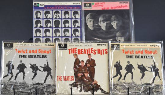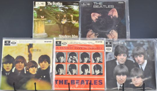 The Beatles & Solo - Thirty six EPs and 7" singles, includes seven UK issues with rounded corner flip back sleeves GEP8913, GEP8938, GEP8952, GEP8880, two copies GEP8882 and GEP8891, nine UK issues with straight corner flip back sleeves GEP8920, GEP8924, GEP8931, GEP8938, GEP8948, two copies GEP8952, GEP8880 and GEP8891, Love Me Do picture disc (PP4949), Taxman (EPEM-10536) Mexican issue, Nowhere Man (0203171) German issue, Paperback Writer Italian issue and (R5452), Lady Madonna (2138) USA issue, Sgt Pepper (R6022), Ob-La-Di Ob-La-Da (numbered 441264), She Loves You, Money b/w Sure To Fall (Deccagan) unofficial release, Movie Medley, two copies Let It Be, three non picture cover GEP8882, R5055 and R5389, two copies GEP8936 both with rounded corner flip back sleeves, Magical Mystery Tour MMT1 gatefold EP with booklet and John Lennon & Yoko Ono Happy Xmas (War Is Over), together with The Rolling Stones DFE8560 picture cover. Records generally appear VG+ to Ex